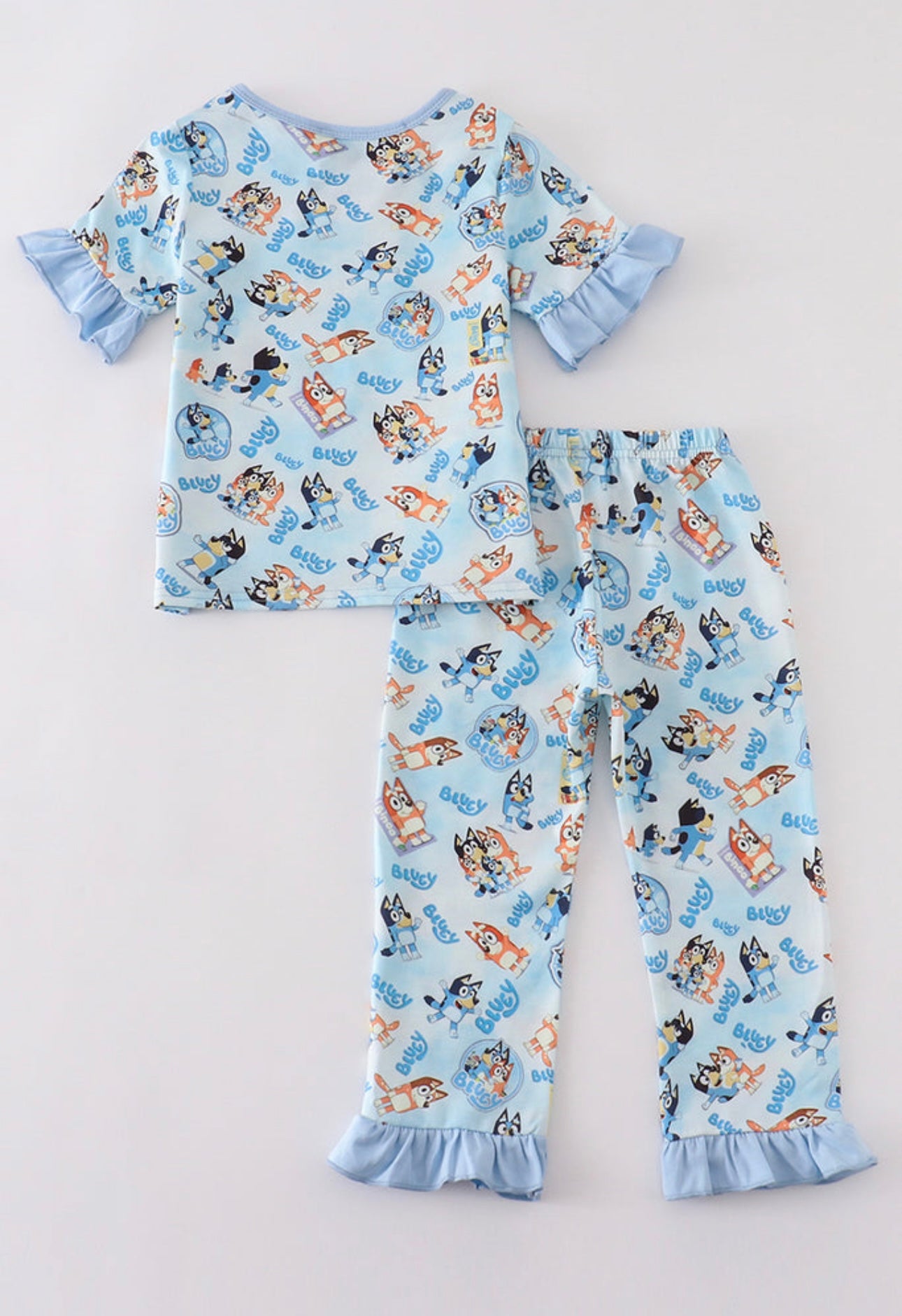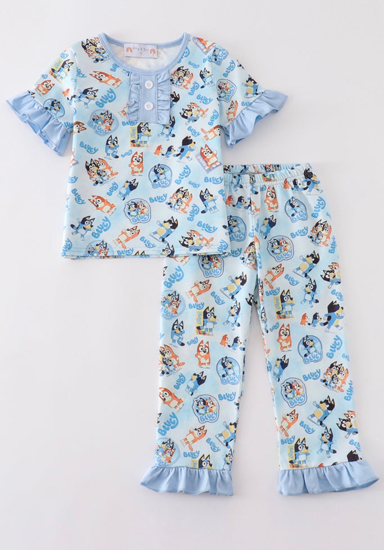 Get ready for bedtime with our cute and comfy Blue Character Girl Pajamas Set. Made with soft fabric, this set features a playful blue character design for a fun twist on your typical pajamas. Perfect for lounging or sleeping, these pajamas will keep you cozy all night long.