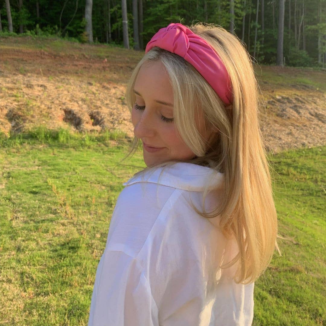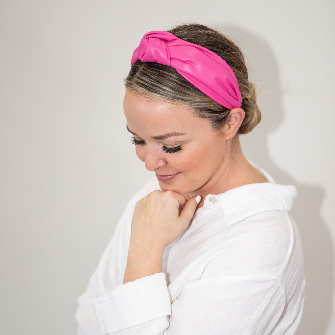 Like a loyal companion, the Brooklyn Headband safely holds back your hair for active days and cozy nights. Our faux leather band looks stylish and is designed with a padding cushion for unbeatable comfort! Experience the perfect blend of form and function with this chic accessory. With a pop of pink, it's the perfect way to spice up your look. Come on, Barbie, let's take a walk on the wild side!
