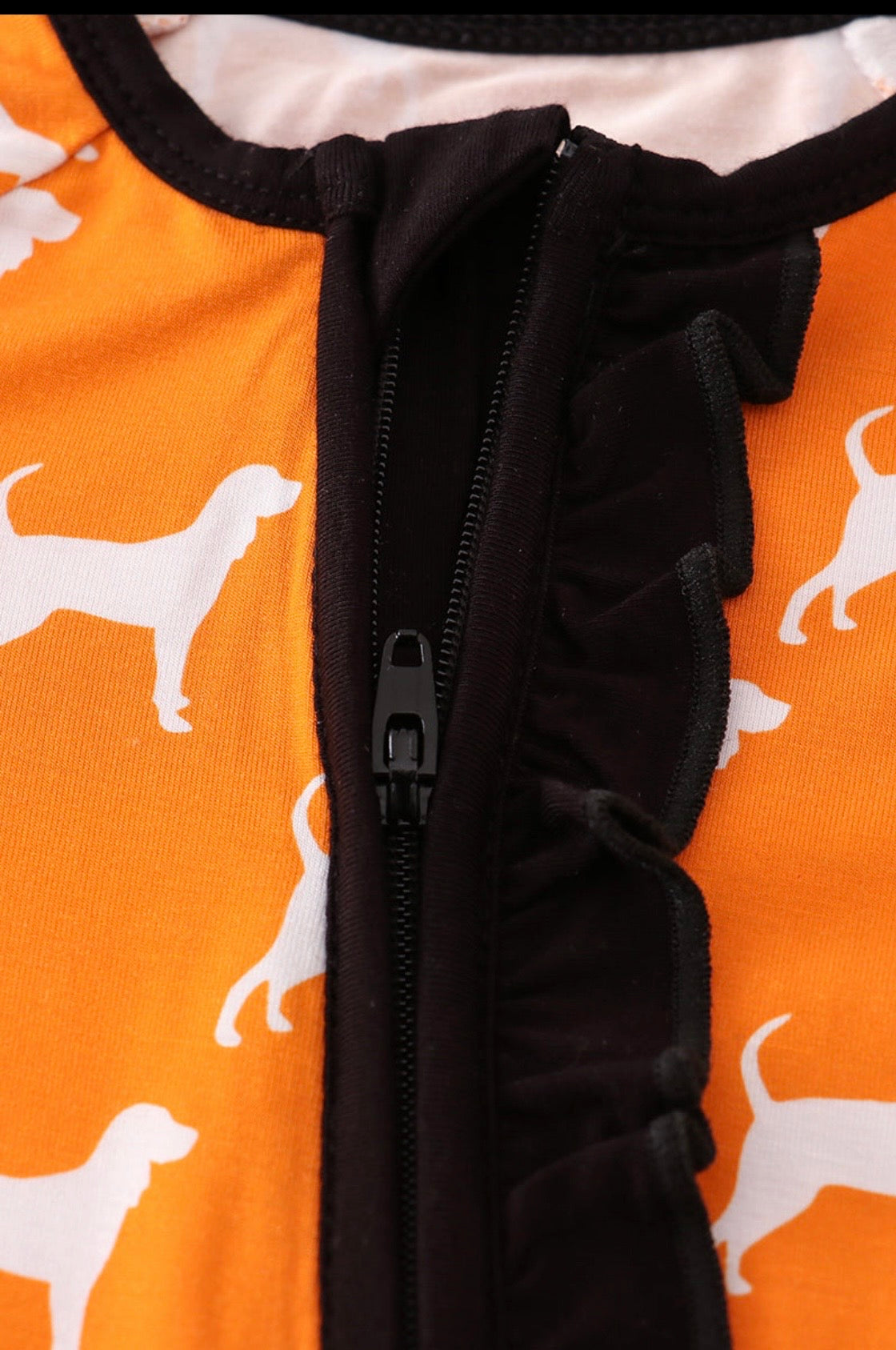 Brighten up your wardrobe with the Orange Tennessee bamboo ruffle romper! Crafted from soft, breathable bamboo fabric, this playful romper features charming ruffles that add a fun, flirty touch. Perfect for sunny days and casual outings, it offers comfort and style in one easy piece. Embrace effortless charm and stay cool all day long!
