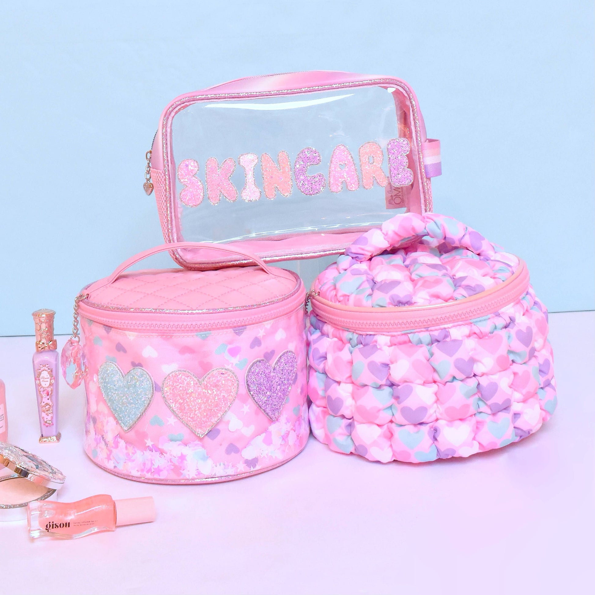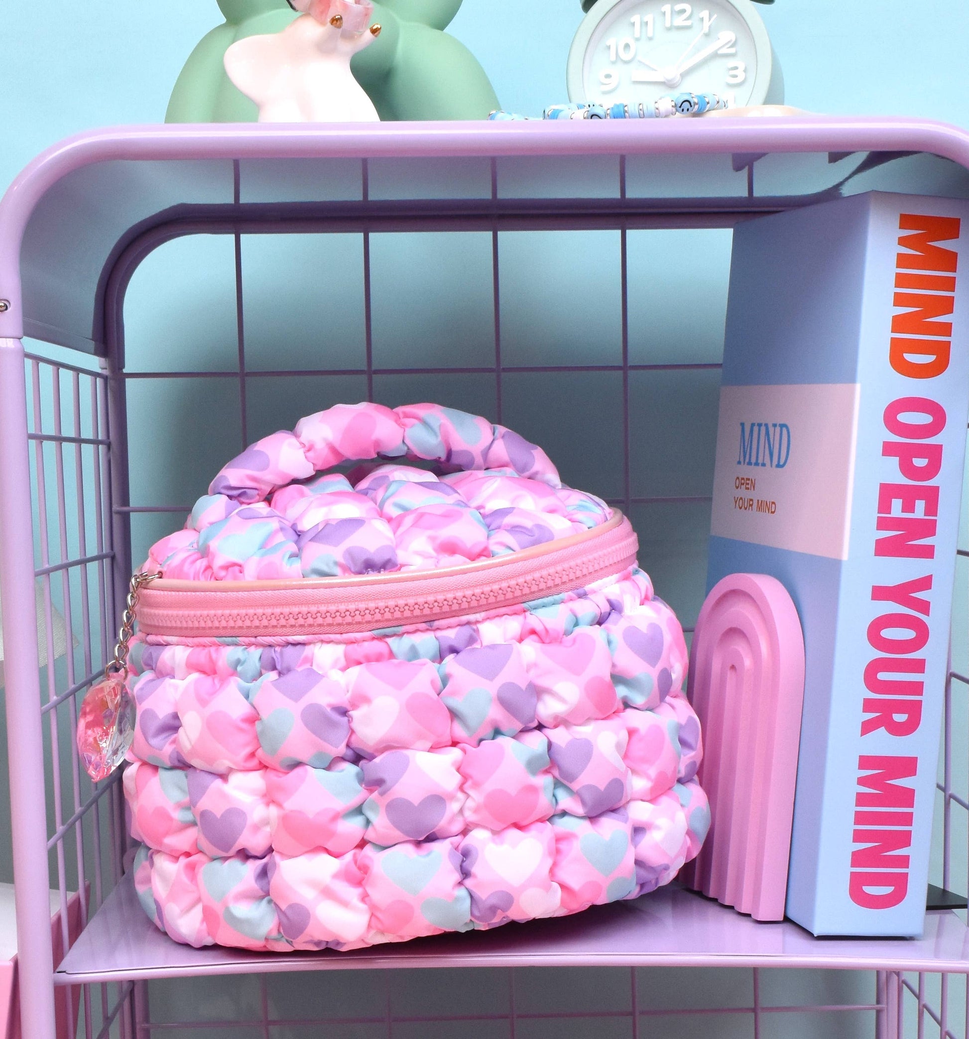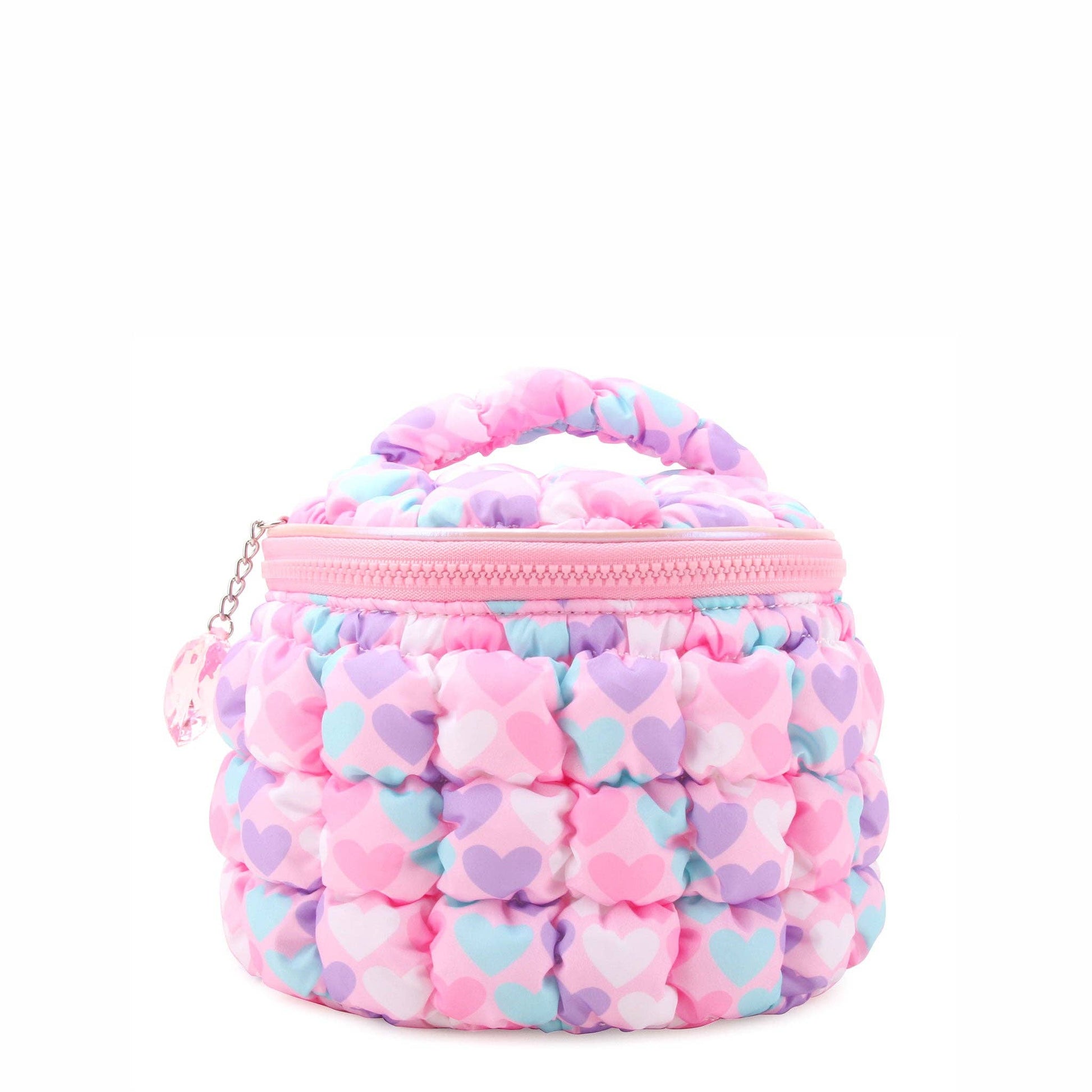 Quilted Scrunchies Printed Hearts Glam Bag with Heart Charm
