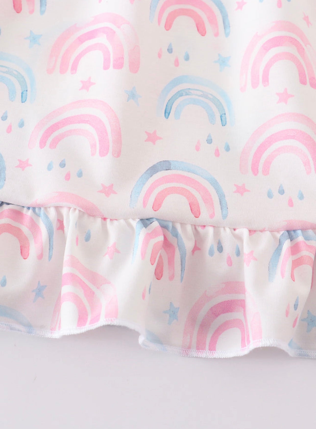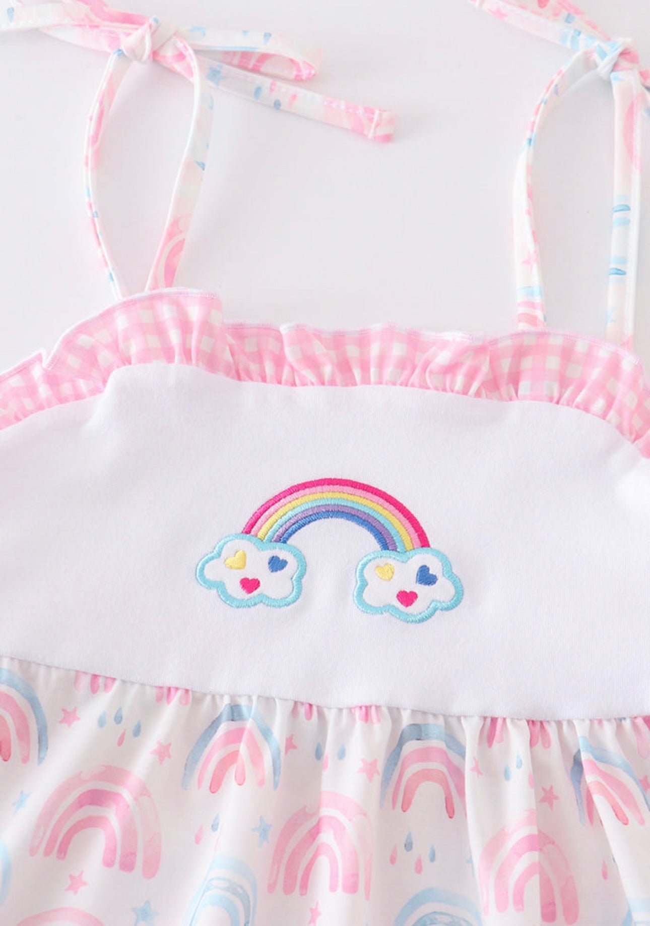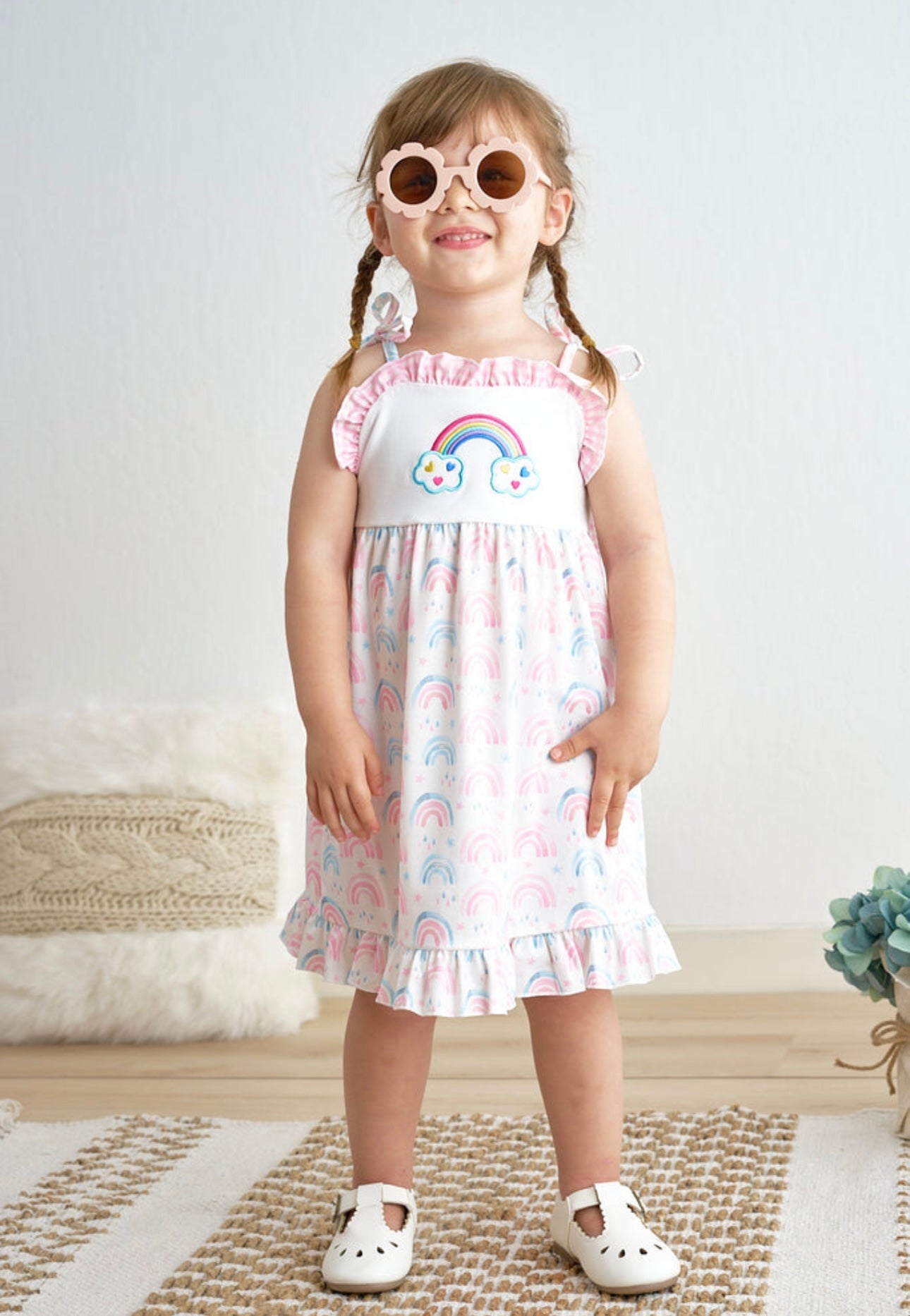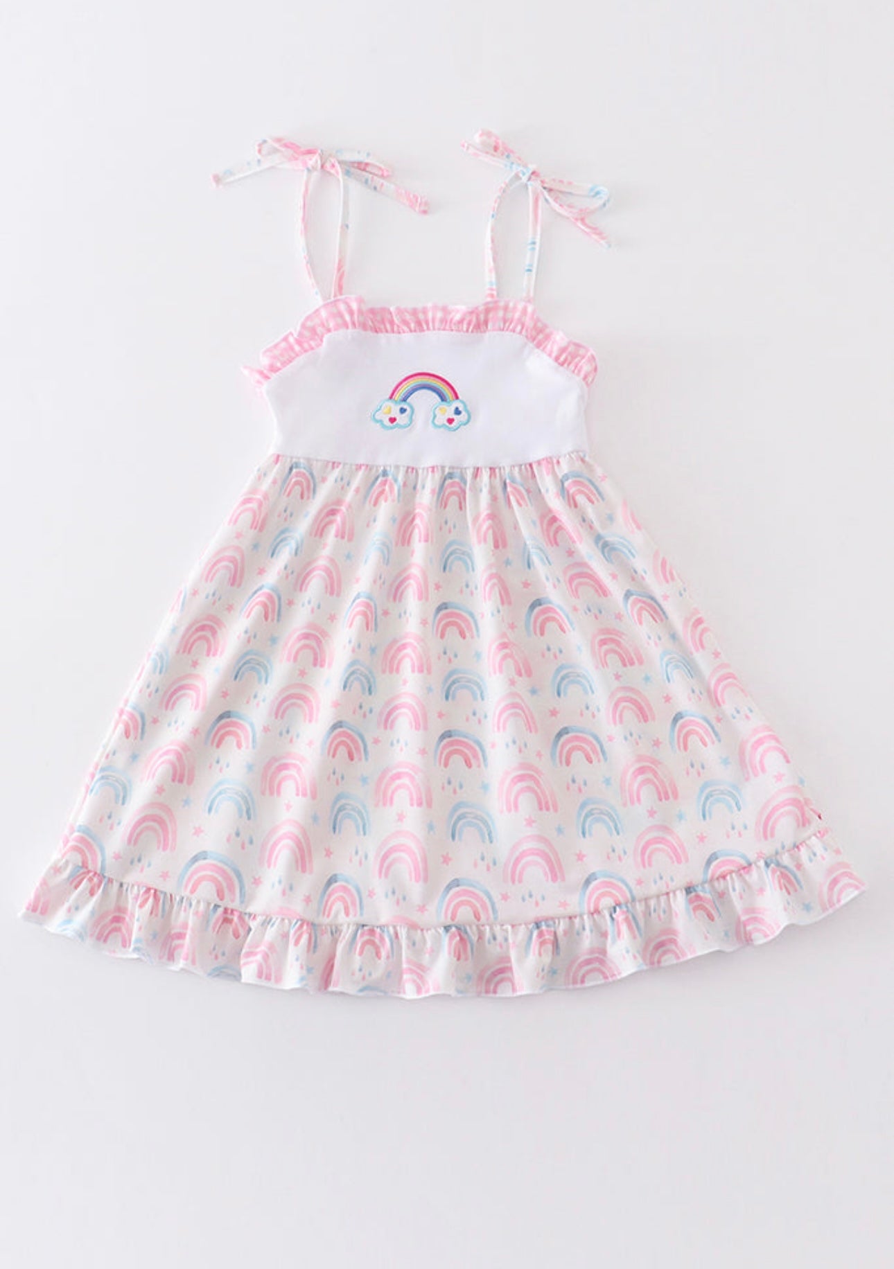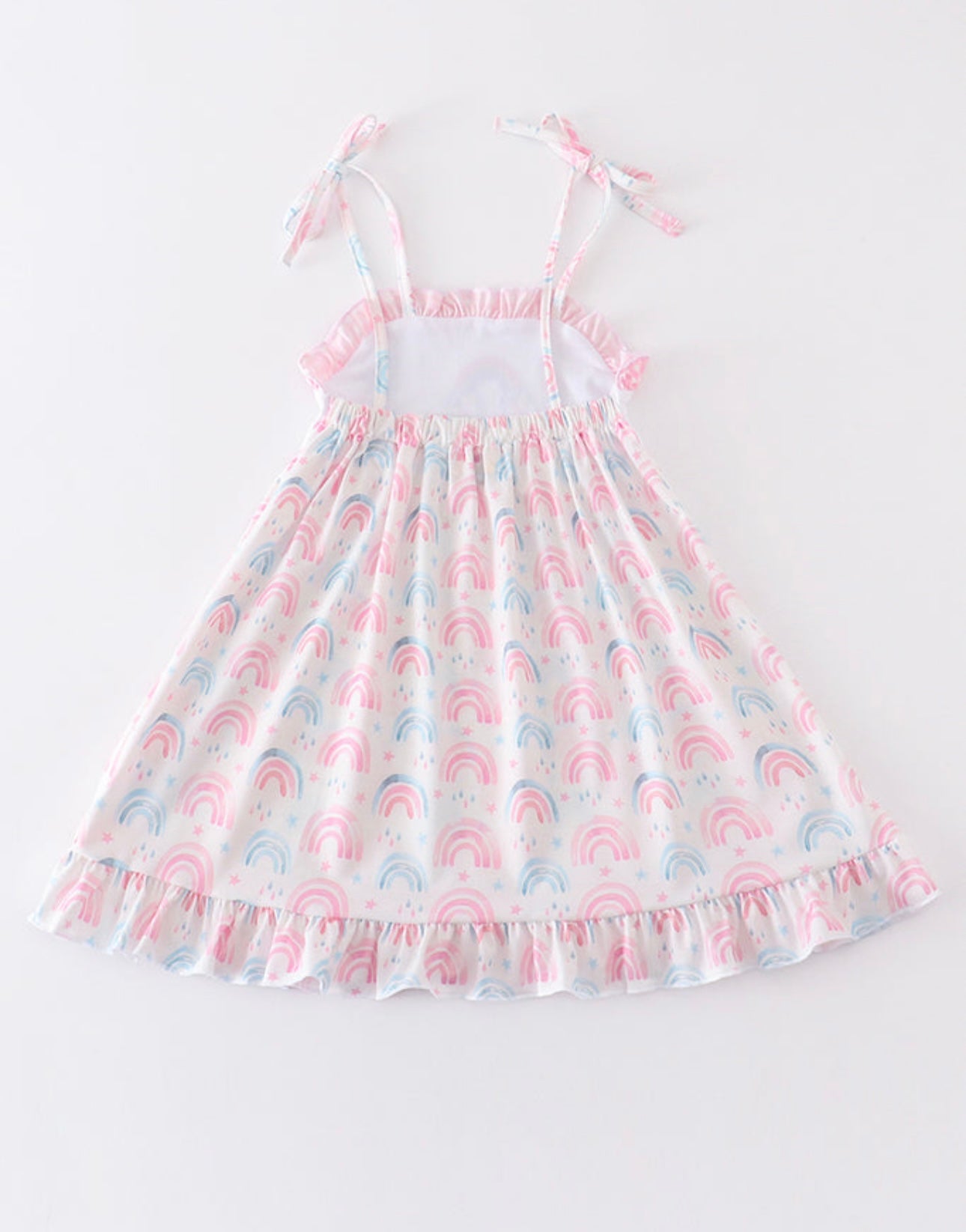 "Unleash your inner unicorn with our premium pink rainbow print strap dress! This dress not only makes a statement with its vibrant colors and playful design, but it also offers superior quality and comfort. Perfect for adding a touch of whimsy to any outfit. Don't miss out on this unique piece!"