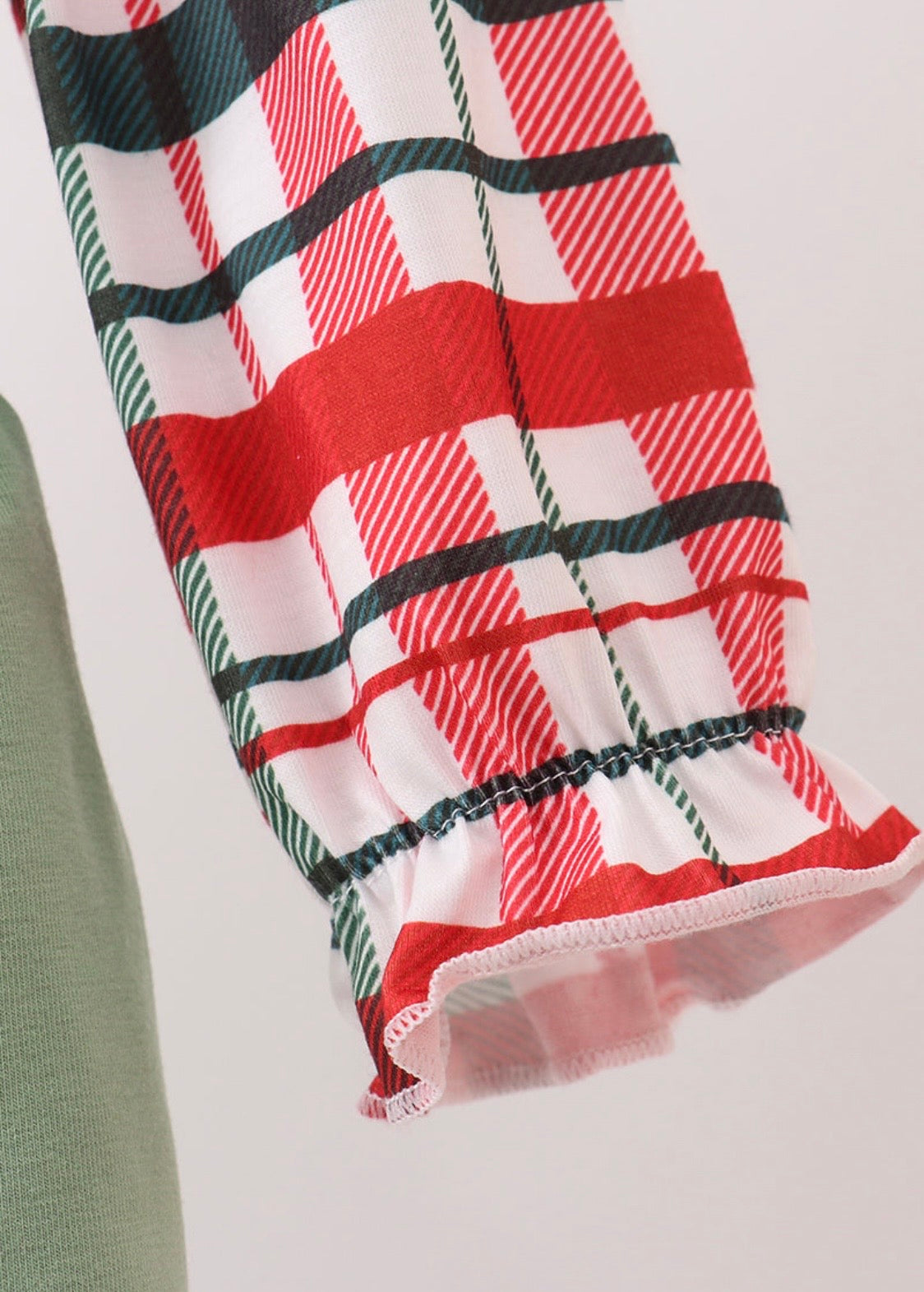 Celebrate the holidays in style with this playful green jumpsuit set, featuring adorable reindeer appliques and charming ruffle details. Perfect for festive gatherings, it combines comfort and cuteness to keep your little one merry and bright all season long.