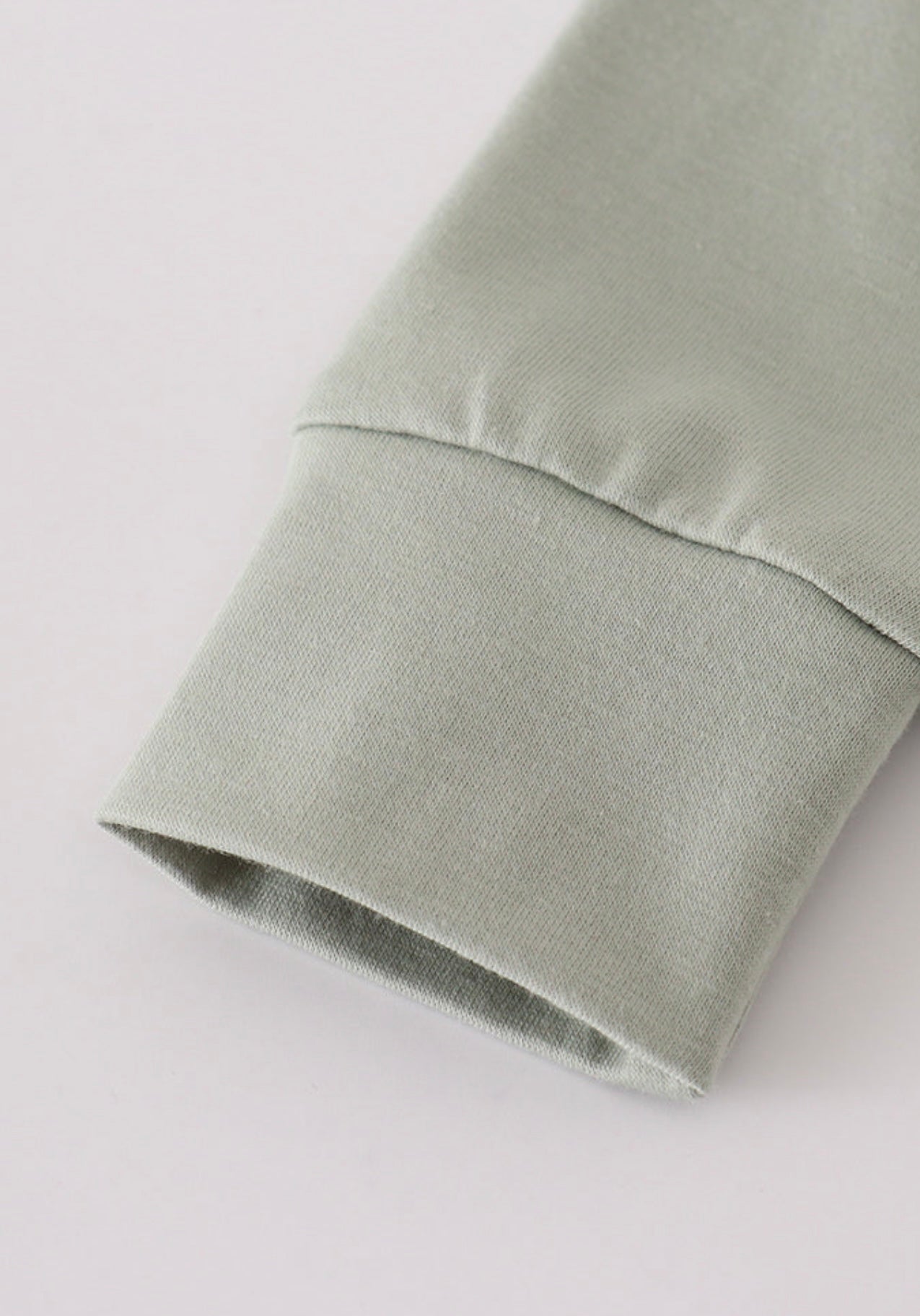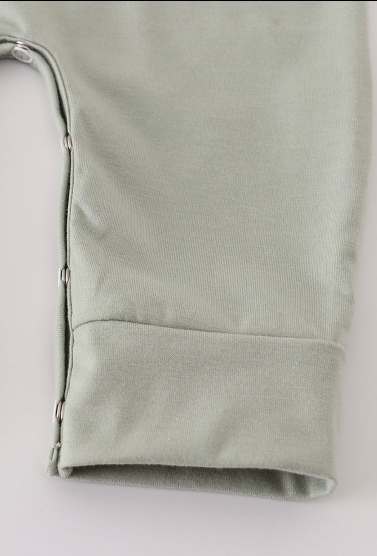 This sage camouflage romper features an adorable turkey applique, perfect for little ones who love a touch of nature and fun. Soft and comfy, it’s ideal for playful days and cozy naps alike. Dress your child in this charming outfit to add a dash of whimsy to their wardrobe!