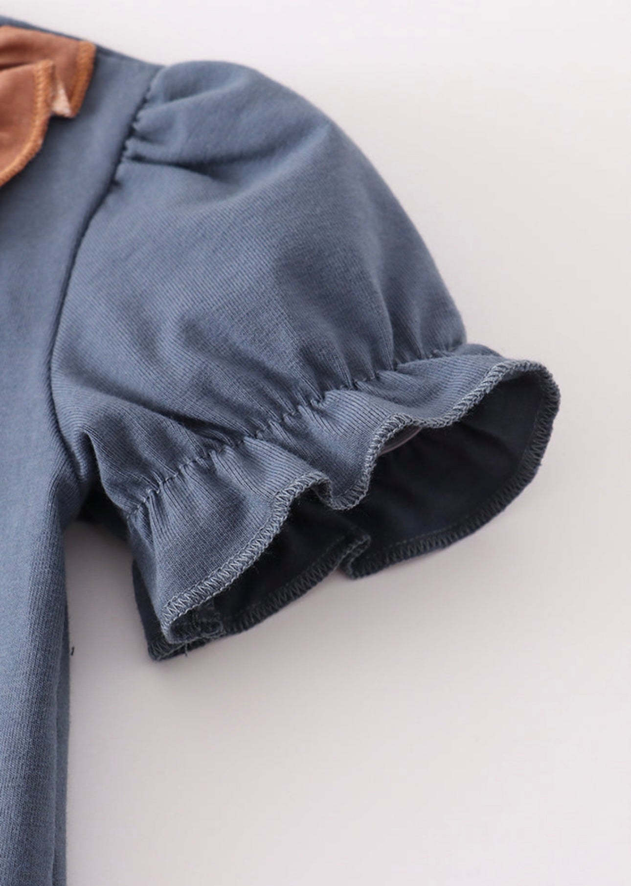 This navy romper brings a playful twist with its charming scarecrow applique and delicate ruffle details. Perfect for sunny days and fun adventures, it combines comfort with a touch of whimsy to keep your little one looking adorable and feeling free to explore.