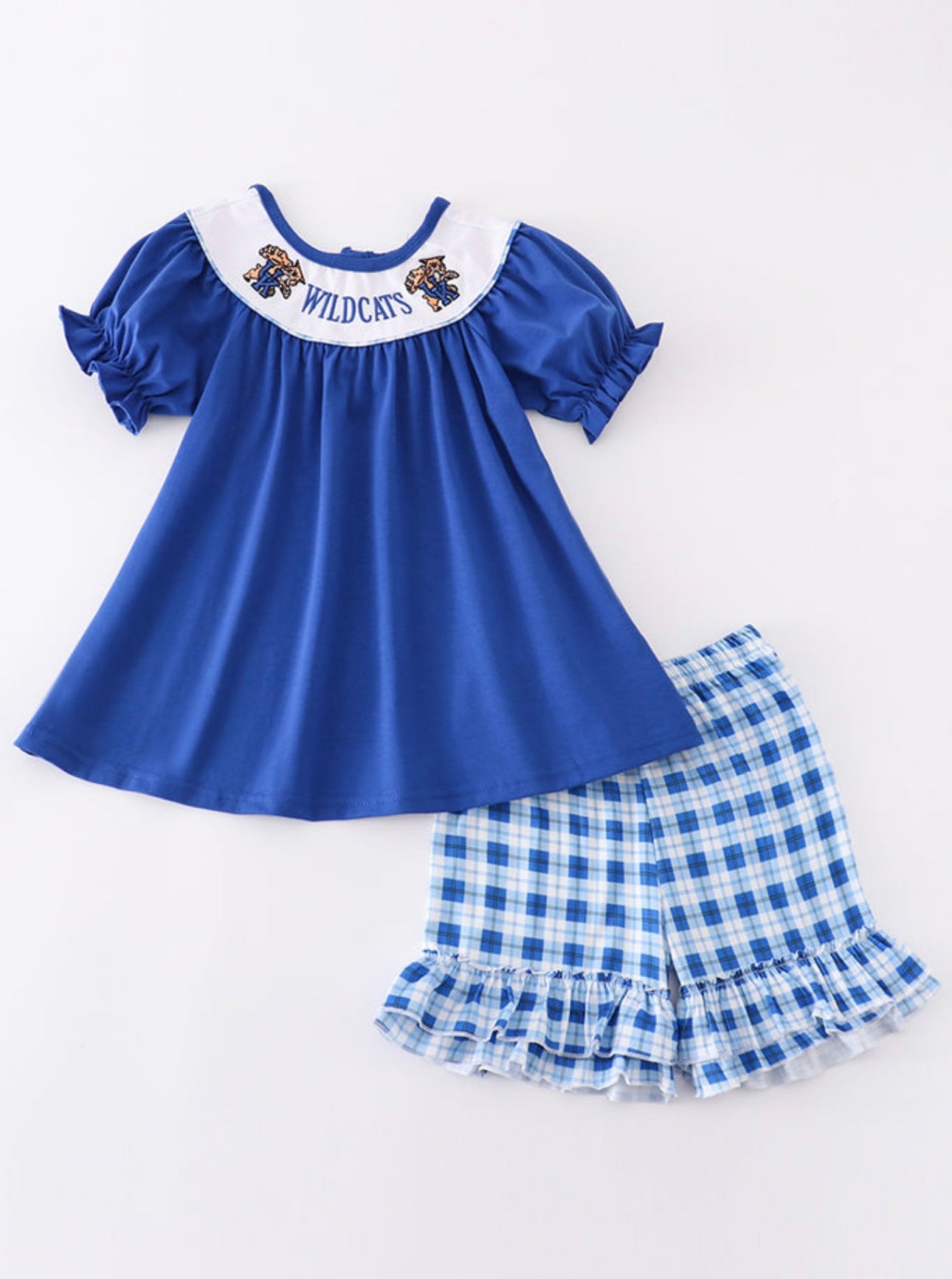 Get ready to stand out with our playful Blue Wildcats embroidery girl set. Featuring bold blue colors and wildcat embroidery, this set is sure to turn heads. Make a statement and express your unique style with this quirky and fun set.