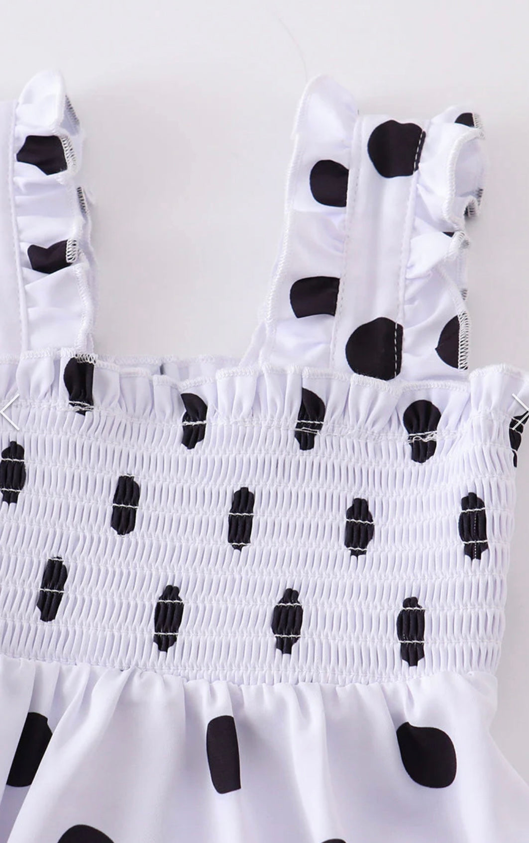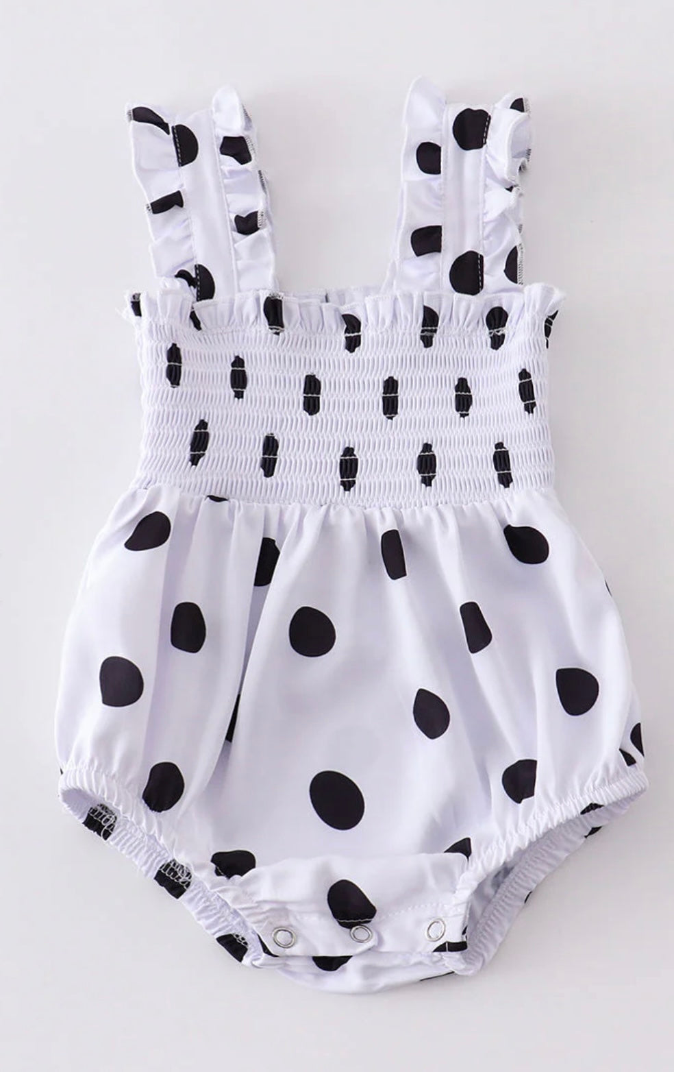 Bubbles and daisies, stars and stripes - hearts and polka dots?! Get your mini fashionista this stylish white dot smocked strap baby romper that will have them feelin' all the love! From the playground to the park, they'll be lookin' fly - and stayin' comfy!